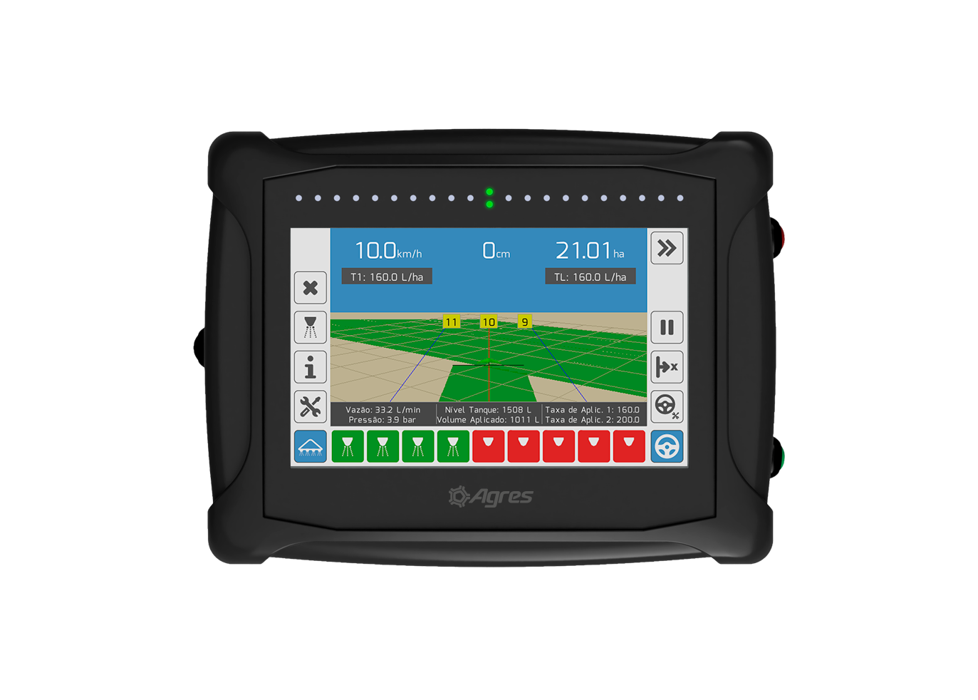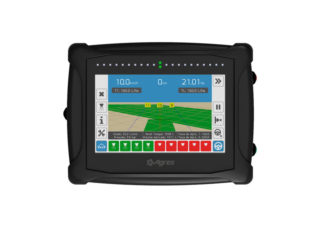 O agroNave 12 It combines robustness, technology and visual comfort in a versatile on-board computer. The 12-inch screen provides a wide and balanced view of maps, implements and operational data, offering fluid control at all stages of farming.