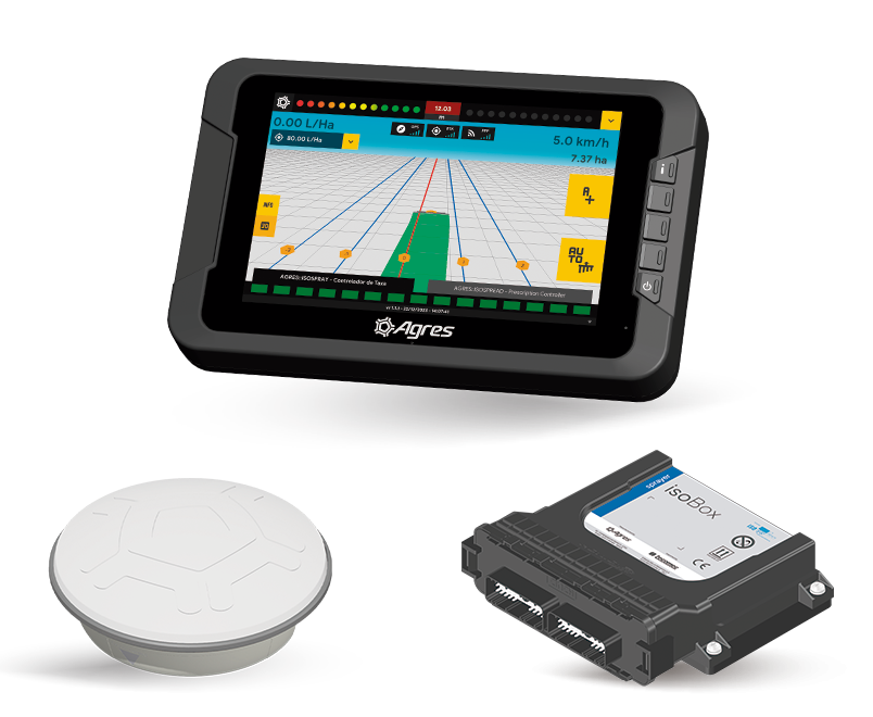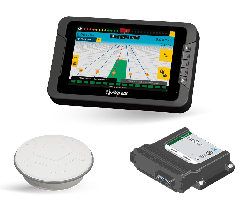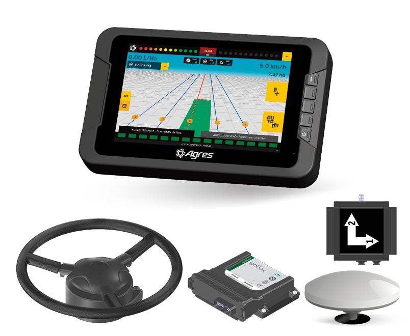 The Suggested Kits were developed to simplify the choice of the ideal technology. Each kit offers the right balance between precision and efficiency, integrating navigation, autopilot, and application control according to the operation's needs. The combinations include different screen sizes, optional ISOBUS compatibility, and complete digital connectivity through the isoFarm platform, included in all kits.