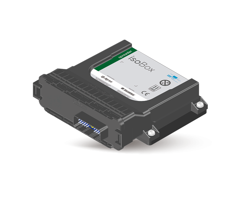 The ECU isoBox Spreader, with ISOBUS technology, allows automatic control of dosage and sections, use of prescription maps, and flexible configuration for different types of machines. It ensures the uniform distribution of solid inputs, optimizing application efficiency.